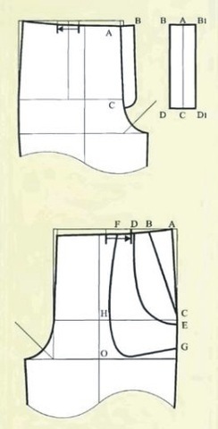 Примечание. 3 см - постоянная величина для построения юбки-брюк на типовую фигуру и равна сумме глубины талии спереди и глубины талии сзади.