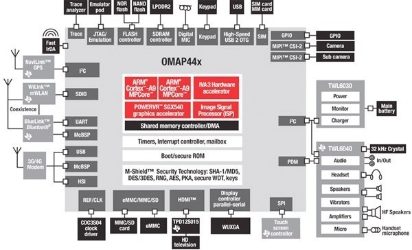 Новый OMAP4440 заставит работать два ядра Cortex-A9 на частоте 1,5 ГГц, в то время как максимальная тактовая частота предшествующей модели 4430 (о которой мы упомянули выше) составляет 1 ГГц. Texas Instruments помимо увеличения производительности CPU рассчитывает ускорить и встроенную в чип графику, по предварительной оценке – на 25%.